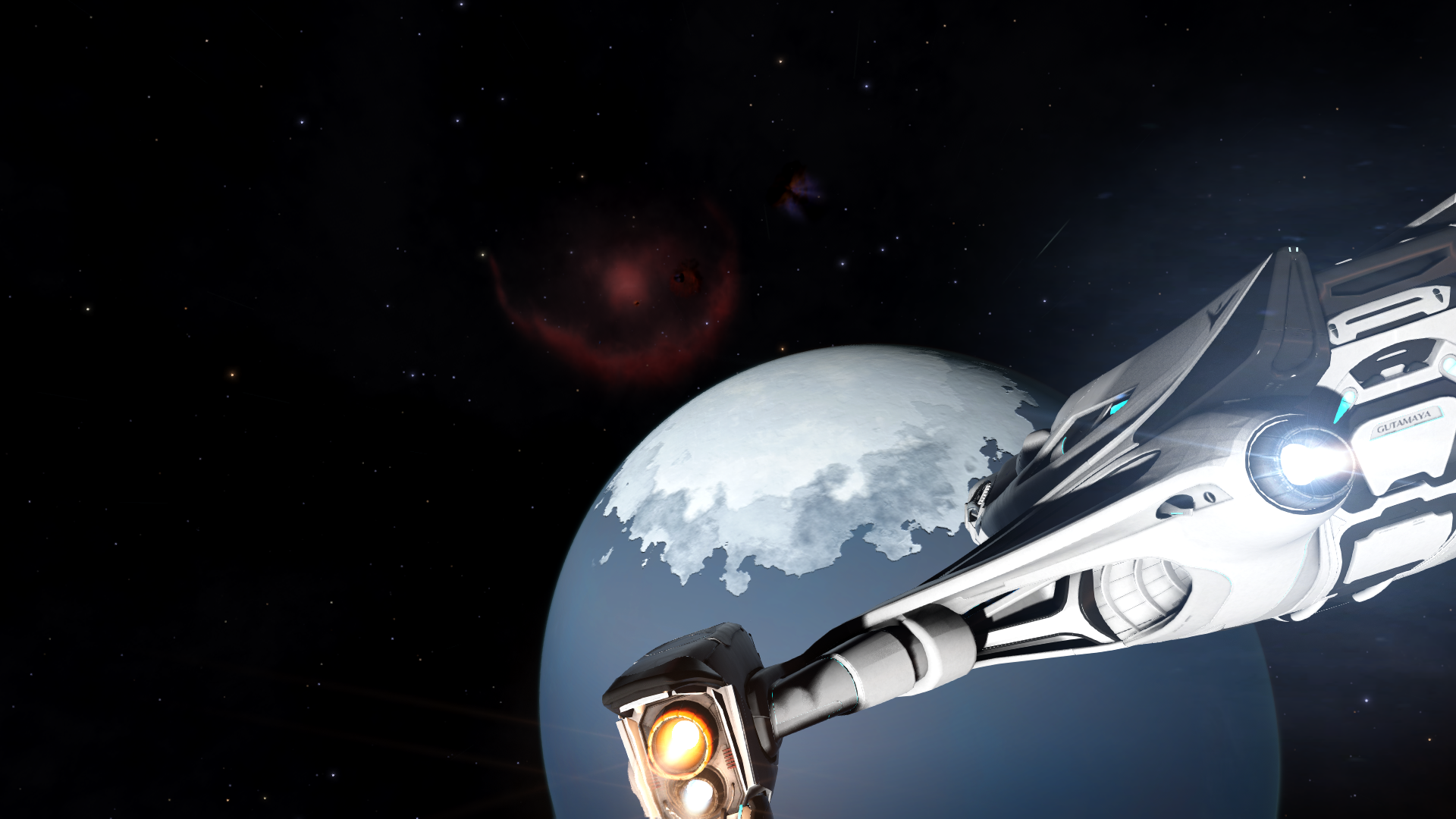 Aktuell sind wir auf dem Weg zum Hexenkopfnebel. Nachdem Fireball Ihren Rausch ausgeschlafen hat, konnten wir uns darauf einigen, zum Hexenkopfnebel zu fliegen und von dort dann wieder RIchtung Heimat aufzubrechen. Die letzten Tage haben wir auch ordentlich Strecke gemacht, sind aktuell nur noch etwa 20 Sprünge vom Nebel entfernt. Unterwegs haben wir 2 Wasserwelten gefunden, allerdings bleibt der Fund einer M-Klasse weiterhin aus.